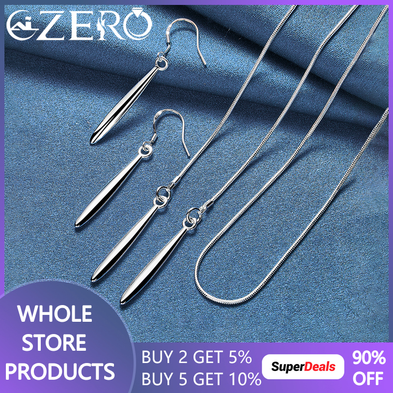 925 Sterling Silver Smooth Surface Needle Pendant Necklaces Earrings For Women Jewelry Set Simple Popular Accessories – Sumsfashion