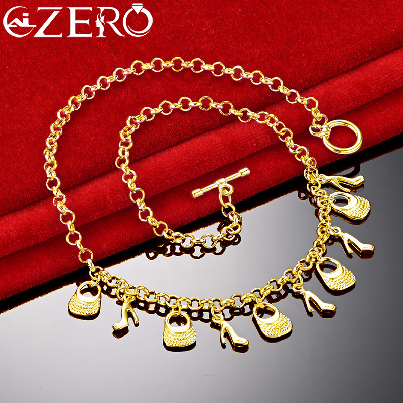 ALIZERO 24K Gold Necklaces 925 Sterling Silver High Heels and Shopping Bag Necklace For Women Wedding Party Jewelry Gift Gold-45cm 18inches – Sumsfashion